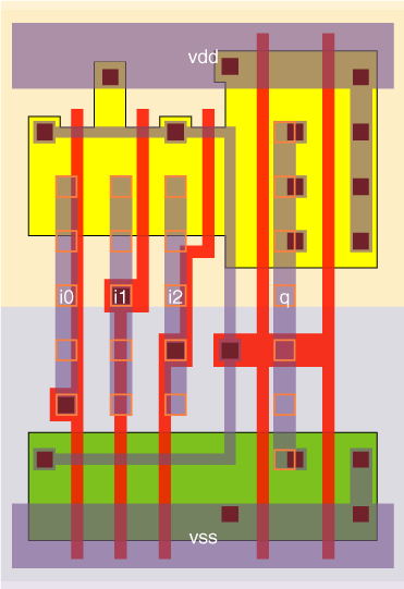 3 I/P AND gate designed with a stage effort of about 2.1 for the a3_x2 and about 4.2 for the a3_x4.