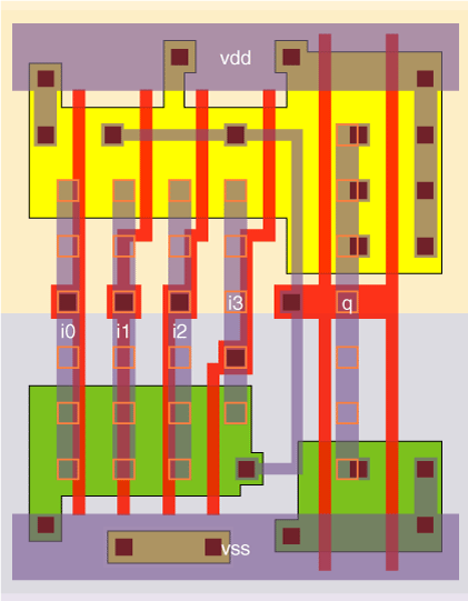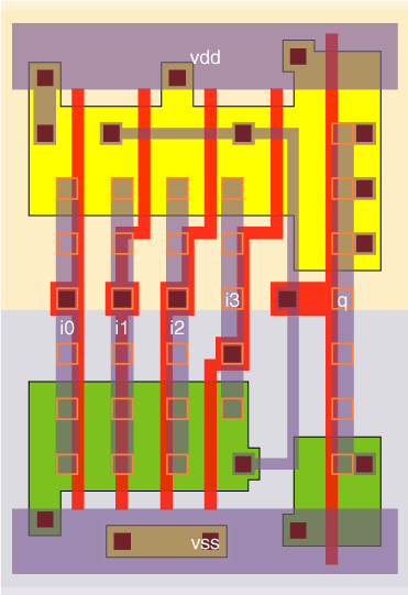 4 I/P AND gate designed with a stage effort of about 2.4 for the a4_x2 and about 4.8 for the a4_x4.