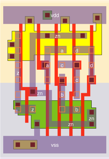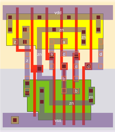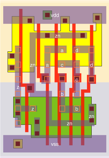 4 I/P AND gate designed with a large input stage. This reduces the delay, especially when the wire capacitance on the input pin is high.