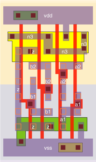 3 cells with different drive strengths, each with a P/N ratio of about 2.
