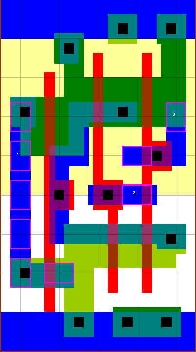 The P/N ratio is set to 2 for both the NAND gate and the inverter. Two types of electrical gain between the NAND gate and the inverter are provided. The v0 version is a higher gain optimised for speed. The v4 version has each stage gain at 4, which optimises the speed for zero wireload and low power. The v4 version has higher Prop delays but lower input pin capacitances. |