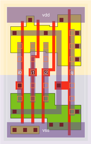 3 I/P AND gate designed with a stage effort of about 2.1 for the a3_x2 and about 4.2 for the a3_x4.